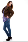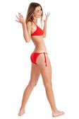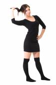 pełnej długości piękny blond dziewczyna, chodzenie i patrzy na Ciebie