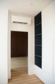 Zdjęcie "Nowoczesny dom z drewnianą podłogą i dekoracyjną drewnianą częścią ściany" może być wykorzystywane do celów osobistych i komercyjnych zgodnie z warunkami zakupionej licencji Royalty-free. Obraz jest dostępny do pobrania w jakości wysokiej rozdzielczości do 5760x3840.