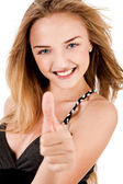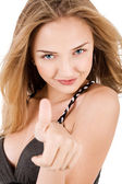 zbliżenie młody model wskazujący pustej przestrzeni