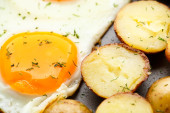 jajko w koszulce z francuski fasoli i pieczone ziemniaki