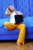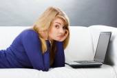 Zdjęcie "kobieta z komputera w domu w rozkładaną" może być wykorzystywane do celów osobistych i komercyjnych zgodnie z warunkami zakupionej licencji Royalty-free. Obraz jest dostępny do pobrania w jakości wysokiej rozdzielczości do 5760x3840.