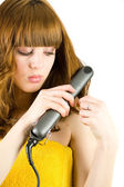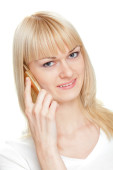 blond dama za pomocą telefonów komórkowych