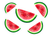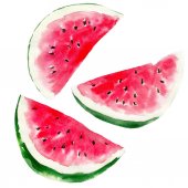 Akwarela soczysty arbuz plasterek zestaw. Ręcznie rysowane kolorowe ilustracje izolowane na białym tle do dekoracji, pakowania, owijania, karty, projekt.