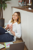Atrakcyjne pulchne dziewczyna gotowanie z przewodnikiem wideo