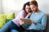 Zdjęcie "Młoda para patrząc na tablecie w domu" może być wykorzystywane do celów osobistych i komercyjnych zgodnie z warunkami zakupionej licencji Royalty-free. Obraz jest dostępny do pobrania w jakości wysokiej rozdzielczości do 5760x3840.