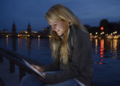 Zdjęcie "Kobieta z tabletem" może być wykorzystywane do celów osobistych i komercyjnych zgodnie z warunkami zakupionej licencji Royalty-free. Obraz jest dostępny do pobrania w jakości wysokiej rozdzielczości do 5760x3840.