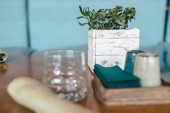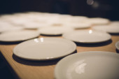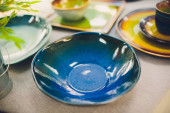 Designerskie ręcznie robione potrawy, talerze i kubki w stylowym butiku.