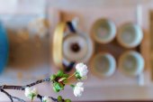 Designerskie ręcznie robione potrawy, talerze i kubki w stylowym butiku.