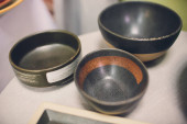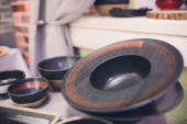 Designerskie ręcznie robione potrawy, talerze i kubki w stylowym butiku.