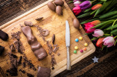 Czekoladowy królik i surowe kawałki czekolady