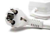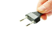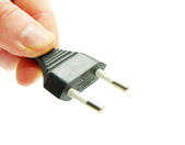 Biały wylot elektryczny trzymany w dłoni zbliżenie na białym tle
