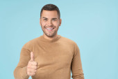 Kaukaski mężczyzna wskazujący palcami i patrzący na kamerę odizolowaną na białym tle