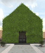 Zdjęcie "Komercyjny budynek publiczny lub pawilon z dachem dwuspadowym. Nowoczesna, kreatywna fasada ze szklaną grupą wejściową i drewnianymi ścianami listew. Odbiór. 3d renderowanie" może być wykorzystywane do celów osobistych i komercyjnych zgodnie z warunkami zakupionej licencji Royalty-free. Obraz jest dostępny do pobrania w jakości wysokiej rozdzielczości do 5760x3840.