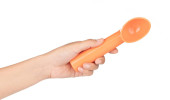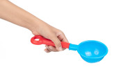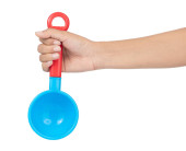 Ręczne trzymanie Małe plastikowe łopaty zabawki izolowane na białym backgr