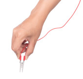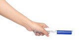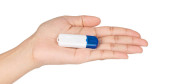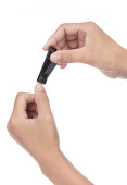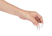 Ręczne trzymanie Red of Usb zasilacz izolowany na białym bac