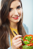 Zdjęcie "Kobieta je sałatkę." może być wykorzystywane do celów osobistych i komercyjnych zgodnie z warunkami zakupionej licencji Royalty-free. Obraz jest dostępny do pobrania w jakości wysokiej rozdzielczości do 5760x3840.