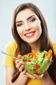 Zdjęcie "Kobieta je sałatkę." może być wykorzystywane do celów osobistych i komercyjnych zgodnie z warunkami zakupionej licencji Royalty-free. Obraz jest dostępny do pobrania w jakości wysokiej rozdzielczości do 5760x3840.