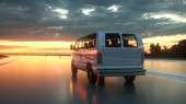 Autobus turystyczny na autostradzie. Koncepcja transportu i podróży. 3d renderowanie