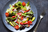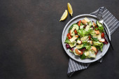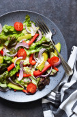 Zdjęcie "Zielona sałatka z pomidorami i smażonym chlebem " może być wykorzystywane do celów osobistych i komercyjnych zgodnie z warunkami zakupionej licencji Royalty-free. Obraz jest dostępny do pobrania w jakości wysokiej rozdzielczości do 5760x3840.