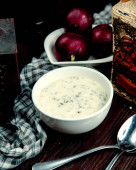 zbliżenie ziół dovga miejsce zupy na tradycyjnym dywanie
