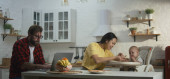 Zdjęcie "Młoda para je śniadanie ze swoim dzieckiem" może być wykorzystywane do celów osobistych i komercyjnych zgodnie z warunkami zakupionej licencji Royalty-free. Obraz jest dostępny do pobrania w jakości wysokiej rozdzielczości do 5760x3840.
