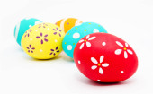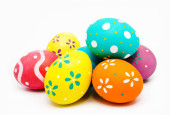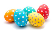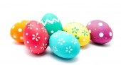 Idealne kolorowe ręcznie malowane pisanki odizolowane na białym tle