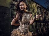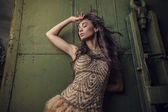 Portret pięknej młodej dziewczyny w ogrodzie letnim.