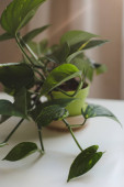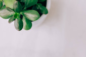 Mały zielony garnek roślin zamioculcas wyświetlany w białym oknie