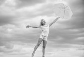 piękna dziewczyna z parasolem na tle błękitnego nieba