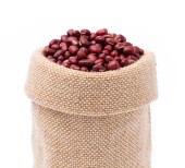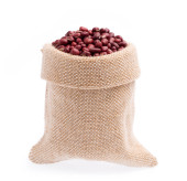 czerwona fasola na naczyniu z drewna izolowane na białym tle