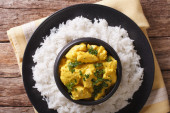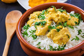 Indyjskie tradycyjne danie. pikantny kurczak duszony w sosie curry