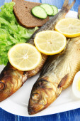 ryby wędzone na płytce z bliska