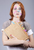 moda młoda dziewczyna w okularach z wieku książki.