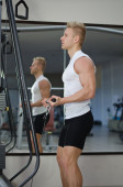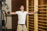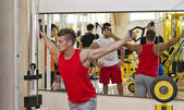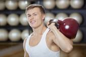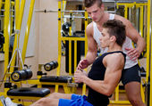 dwóch młodych mężczyzn w siłowni z kettlebells