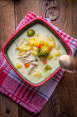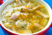 Polska zupa jęczmienna z warzywami i kurczakiem - krupnik.