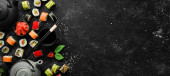 Maki sushi z łososiem. Kawałki pysznego sushi. Kuchnia japońska