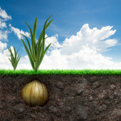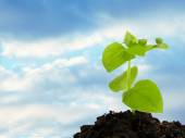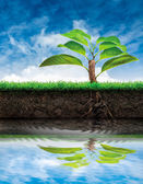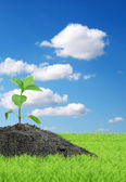pochodzenia drzewa i gleby z trawy w błękitne niebo