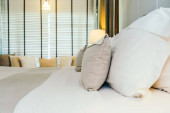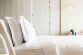 Biała wygodna poduszka na dekoracji łóżka wnętrze pokoju w ośrodku hotelowym