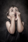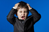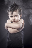 zabawa, dziecko rocker strój i zabawny wyrażenia Grzywacz