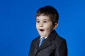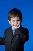 biznesmen, portret ładny mały chłopiec w chroma niebieski deseń