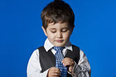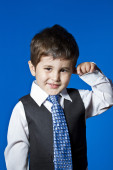 sukces, biznesmen chłopiec trochę zaskoczony, ładny portret na bl