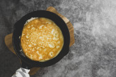 Zdjęcie "Omelette w czarnej patelni, ciemne zdjęcie żywności. Najlepszy widok na zdrowe śniadanie. Przestrzeń kopiowania." może być wykorzystywane do celów osobistych i komercyjnych zgodnie z warunkami zakupionej licencji Royalty-free. Obraz jest dostępny do pobrania w jakości wysokiej rozdzielczości do 5760x3840.