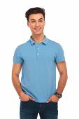 młody człowiek dorywczo z rękami w kieszeniach uśmiechający się