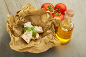 pozostawia plastry mozzarelli z pomidorami i bazylią