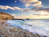 wspaniałe wschód landscapedawn skaliste wybrzeże i długo exp
