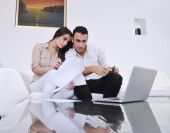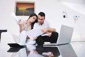 Młoda para działa na laptopie w domu