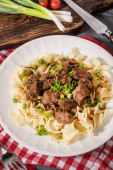 Zdjęcie "Klopsiki wieprzowe z grzybami we własnym sosie serwowane z mchem tagliatelle." może być wykorzystywane do celów osobistych i komercyjnych zgodnie z warunkami zakupionej licencji Royalty-free. Obraz jest dostępny do pobrania w jakości wysokiej rozdzielczości do 5760x3840.