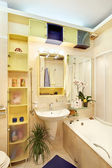 Zdjęcie "nowoczesne mała łazienka w kolorach niebieskim szeroki kąt widzenia" może być wykorzystywane do celów osobistych i komercyjnych zgodnie z warunkami zakupionej licencji Royalty-free. Obraz jest dostępny do pobrania w jakości wysokiej rozdzielczości do 5760x3840.