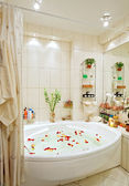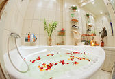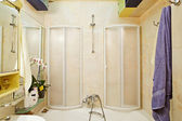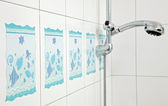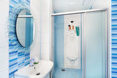 nowoczesne mała łazienka w kolorach niebieskim szeroki kąt widzenia