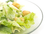 Zbliżenie sałatki na białym talerzu